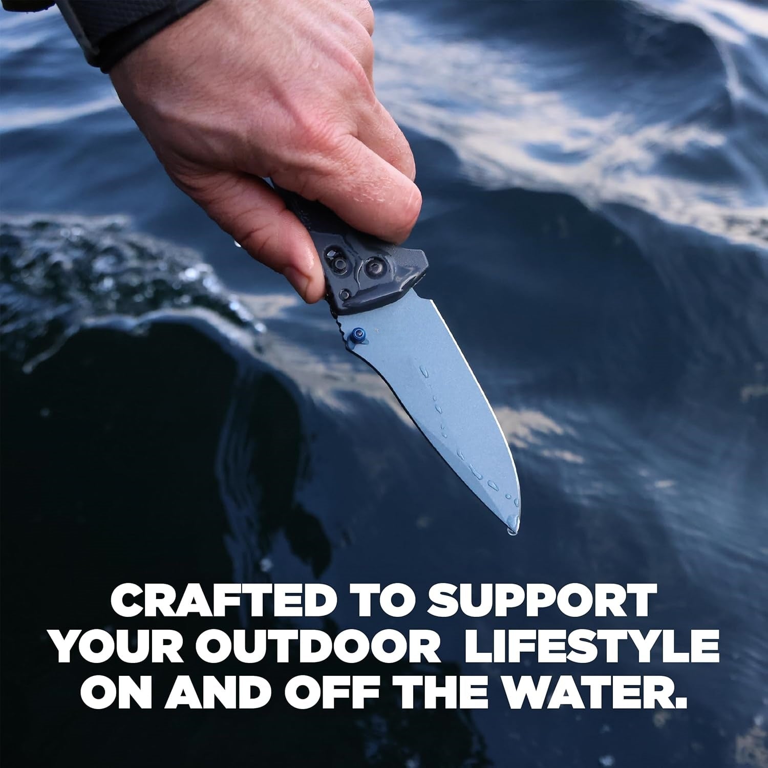 Proper care and regular maintenance help make your Benchmade knife yours, for life. The Water Collection of knives was designed for use in and around all types of water environments. While the CPM-MagnaCut blade steel has a high level of corrosion resistance, leaving water on the blade for long periods of time can lead to premature corrosion of the blade. Wipe the blade clean with the included cleaning cloth between uses to keep it dry and free from debris.