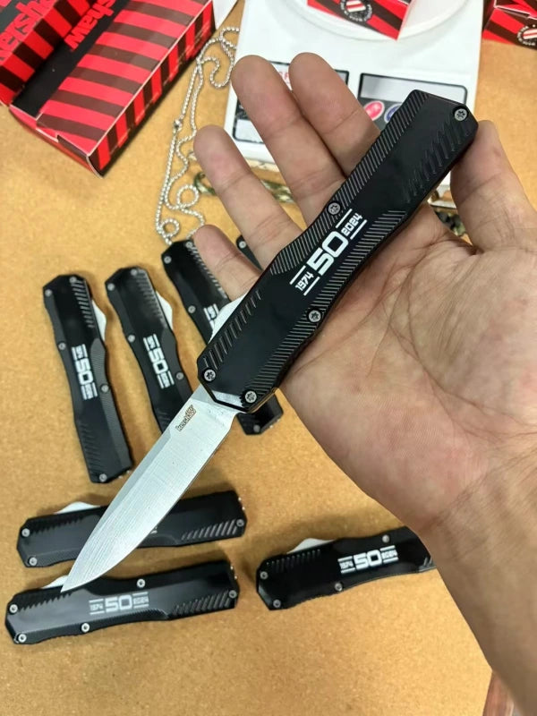 The Kershaw Knife 9000 Livewire 50th OTF AUTO is engineered for those who demand precision and reliability in their cutting tools. Featuring a 3.07" 20CV stonewashed point blade, this knife offers exceptional edge retention and corrosion resistance, making it ideal for professional use. The T6-Aluminum handles provide a lightweight yet robust grip, ensuring comfort and control during use. Whether you're a collector or a professional, this knife is a testament to Kershaw's commitment to quality and innovation. Explore the range of kershaw knives for sale and discover why the Kershaw Knife is a preferred choice for many.