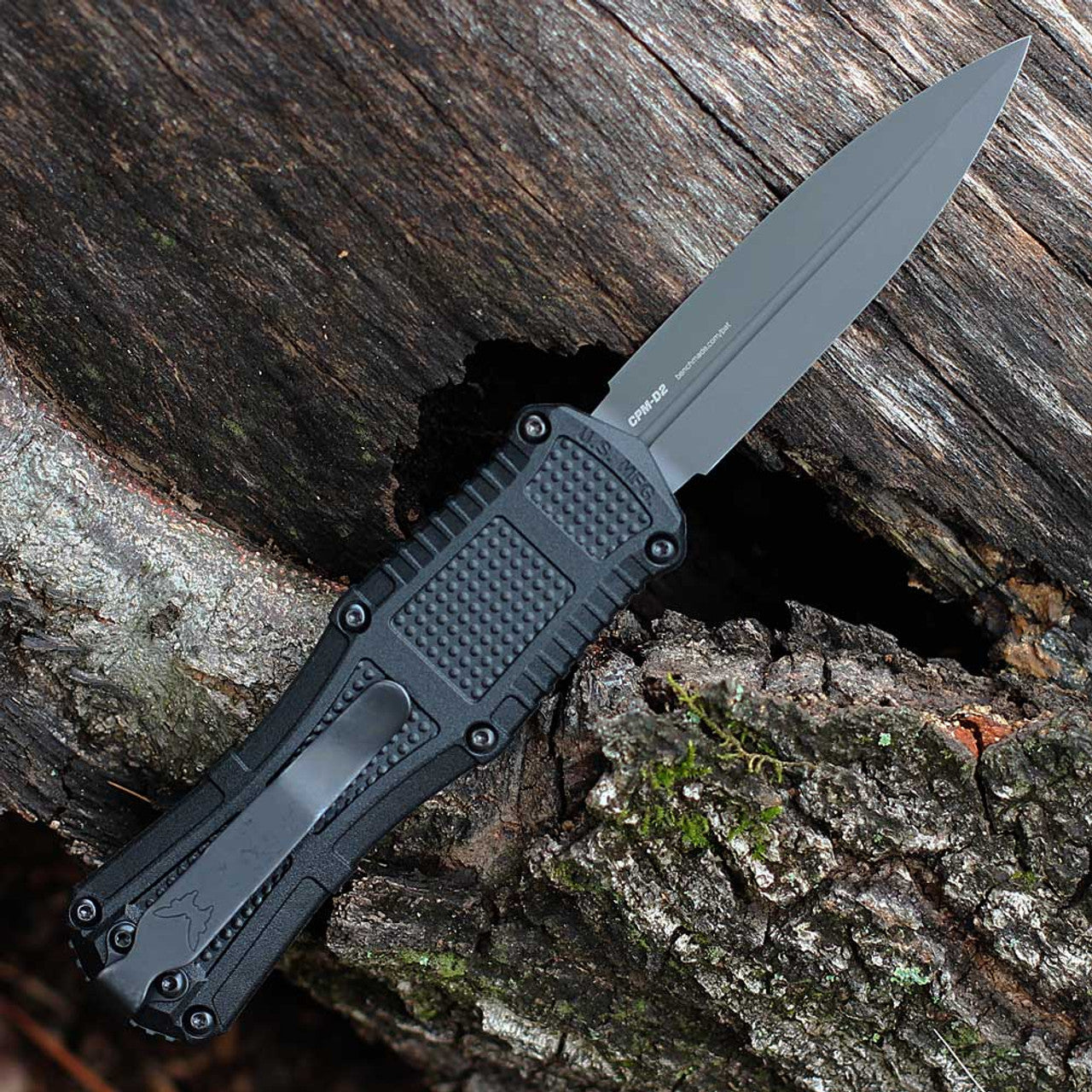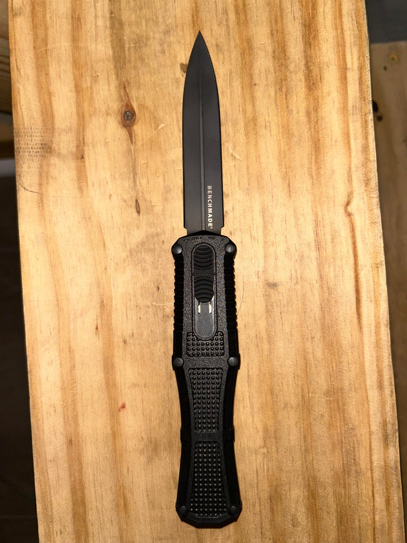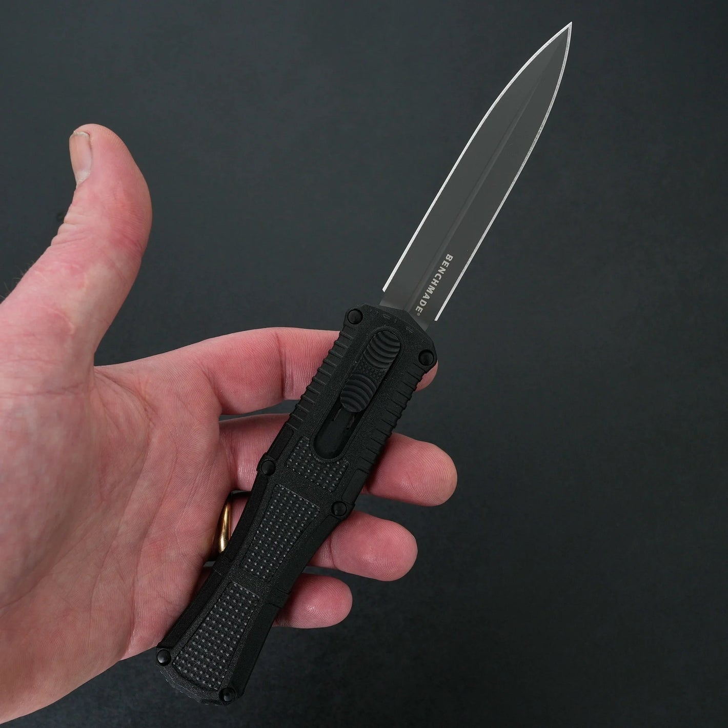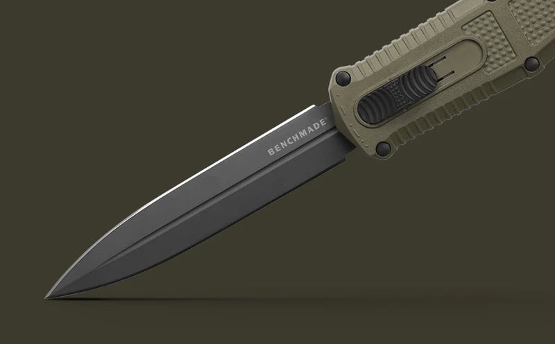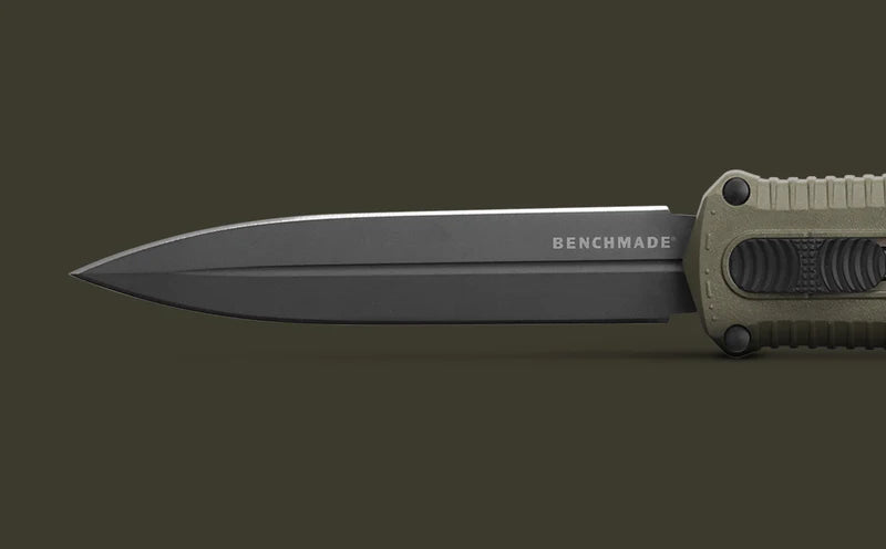Symmetrical blade with two sharpened edges meeting at a piercing tip.
